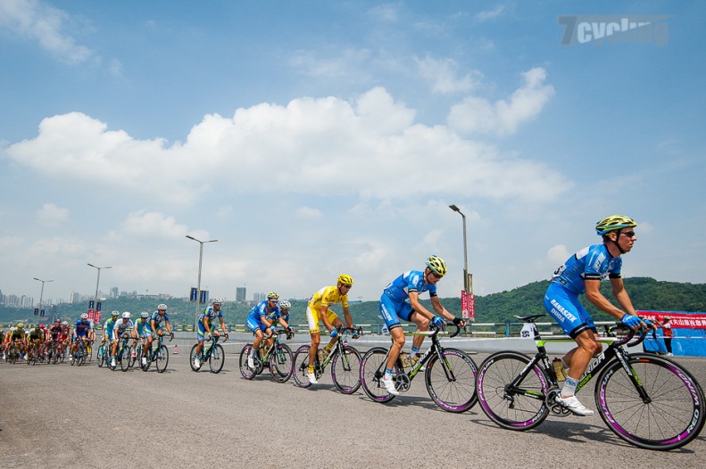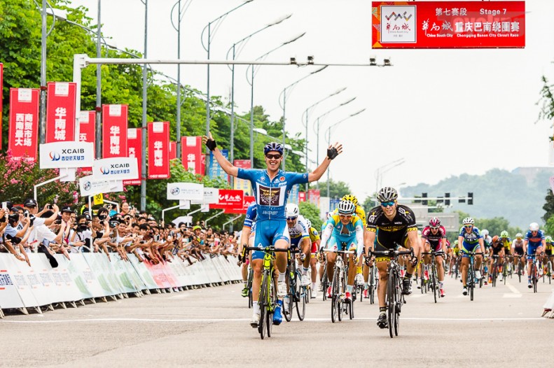 2014第5届环中国国际公路自行车赛1,第7赛段重庆巴南城市绕圈赛,身着冲刺王蓝衫来自台北RTS森地客车队161号俄罗斯老将鲍里斯终于冲得赛段冠军,成绩2小时04分16秒,“冲刺王”名至实归!赛段第二是来自德国斯图加特车队94号图梅尔(THÖMEL Tino),第三是澳大利亚Avanti车队36号尼尔(VAN DER PLOEG Neil)。