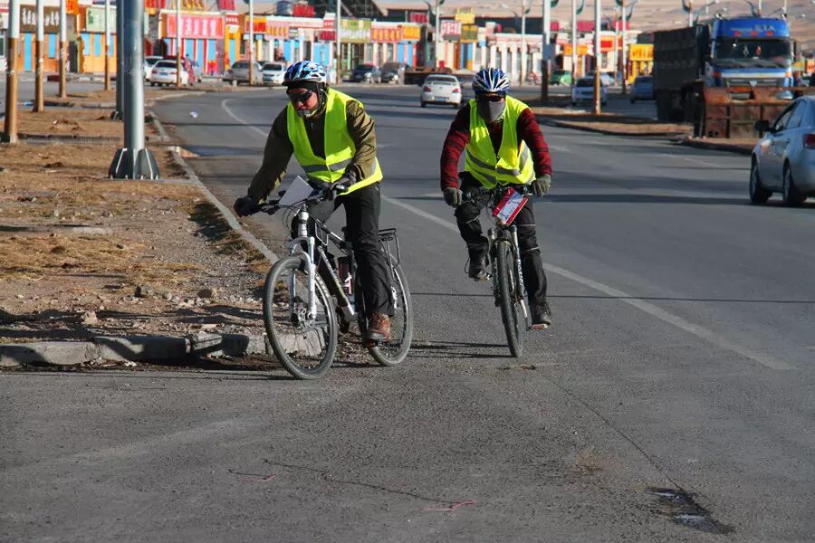 从环湖西路到315国道交叉口,路面积雪很厚,很明显这是前几天下的雪没有化。保障车车底擦着冰茬走了很远。队员们已经在100公里处收容。这样的极寒天气和路面无法再继续骑行,再加上能见度很低。为人员安全着想,我们停止了测试。