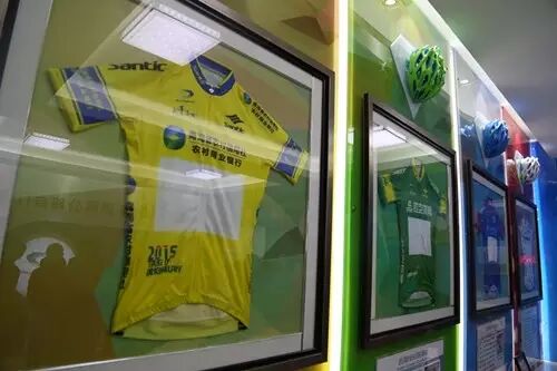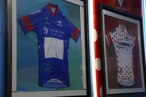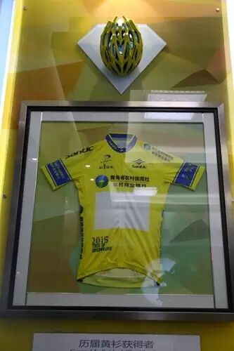 陈列在展厅内的环湖赛蓝色领骑衫。