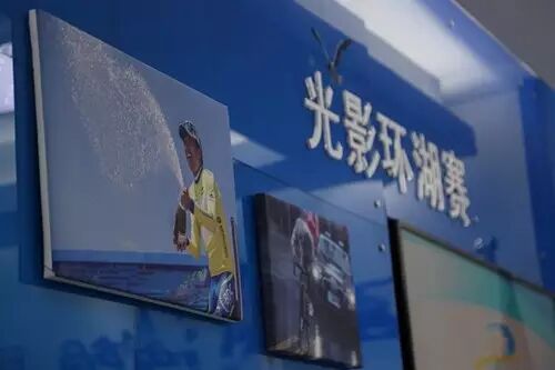 环湖赛展厅内的“光影环湖赛”照片墙。